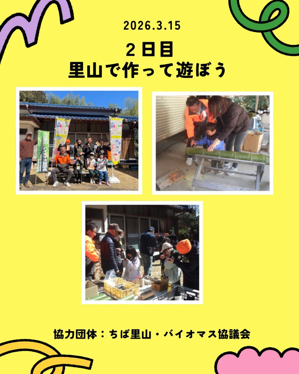 - 【第2回】里山の恵みを活用した竹細工 市原の雄大な自然に身を置き、竹を切る・割るといった工程から自分たちで遊び道具を制作。既製品にはない「一つのものから多様な遊びを生み出す工夫」を学びました。